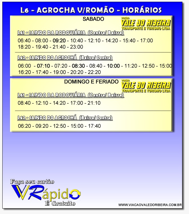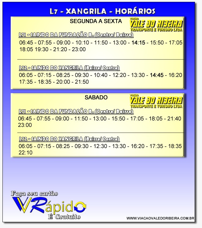 Observação: Todos os horários da linha L5 (Bairro / Centro) foram readequados (suprimido o trecho do Spani Atacadista) pois não há demanda de passageiros.